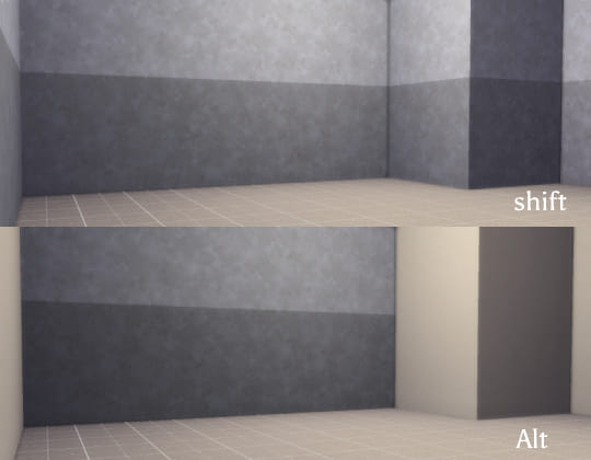 원하는 벽지를 선택하고 Alt 키를 누른 상태로 벽을 클릭하면 한 쪽 벽(평평하게 한 면으로 이어진 벽) 전체를 한번에 칠 할 수 있다.