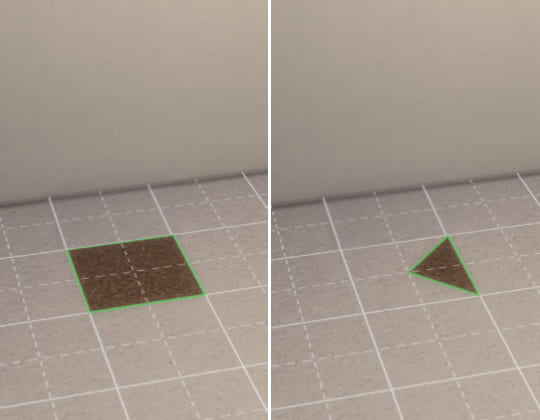 원하는 타일 선택 후 Ctrl + F 키를 누르면 타일이 1/4만 칠할 수 있게 변환된다. 다시 누르면 원래대로 돌아온다.